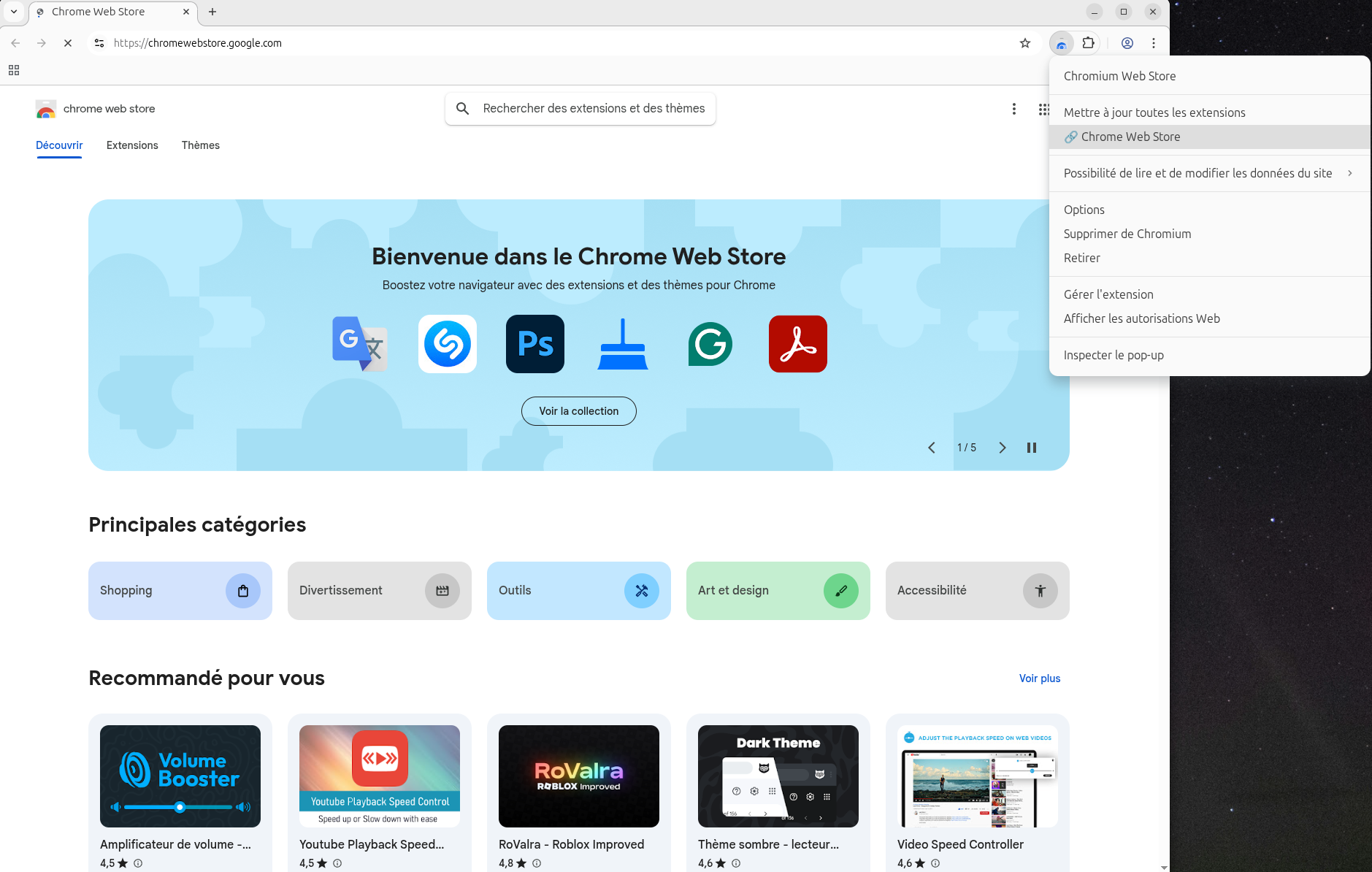 - Cliquez droit sur l'extension puis choisissez "Chrome Web Store" :