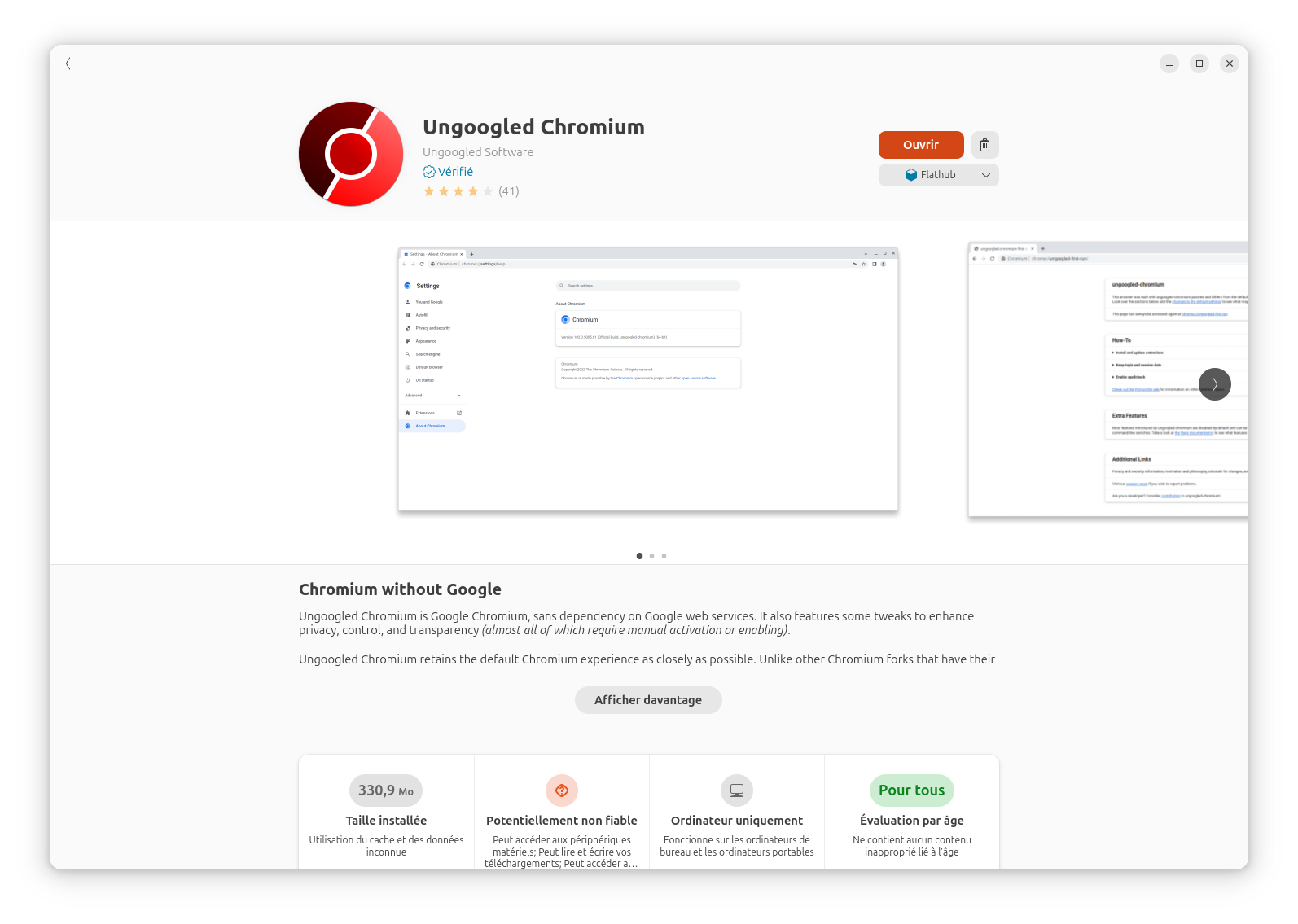 Dans certains cas, il peut être nécessaire d'installer le navigateur via cette commande flatpak install flathub com.github.Eloston.UngoogledChromium.