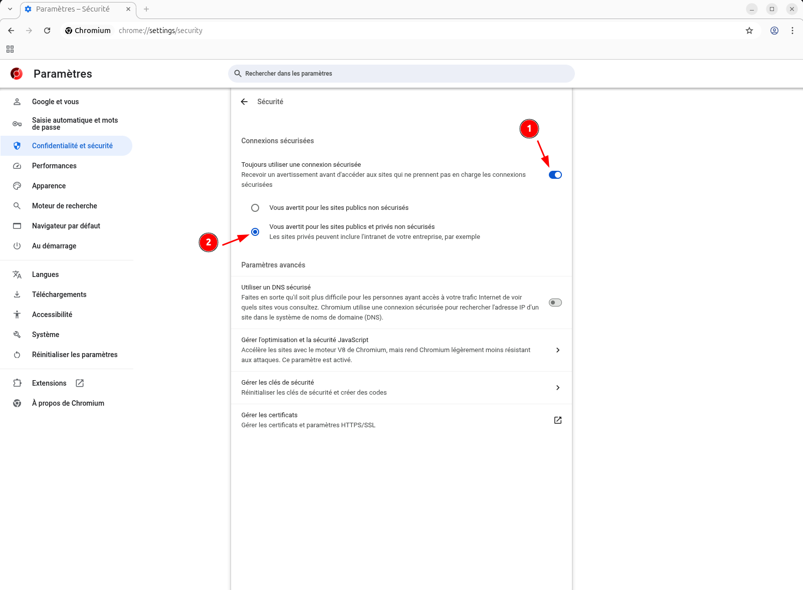 Il est tout à fait possible, voire recommandé, de forcer l'utilisation du HTTPS lors de toutes nos visites de sites web. Pour ce faire :