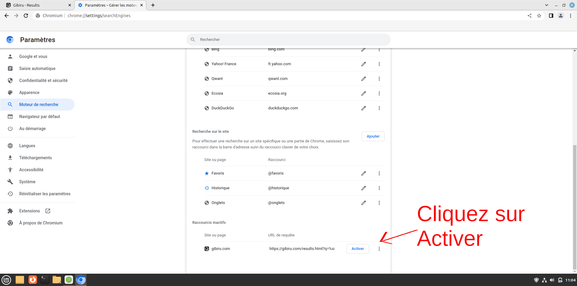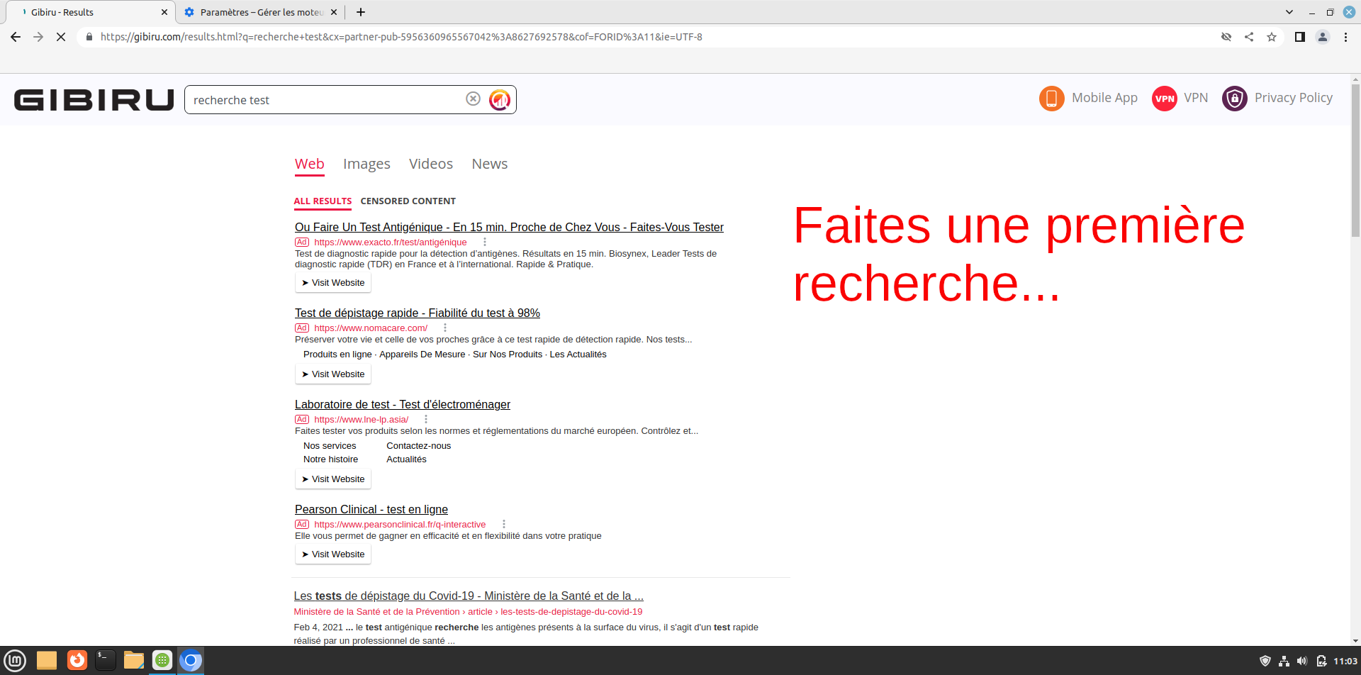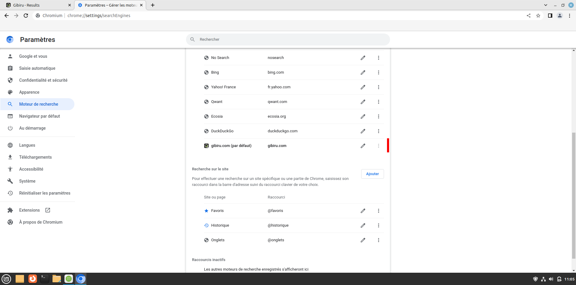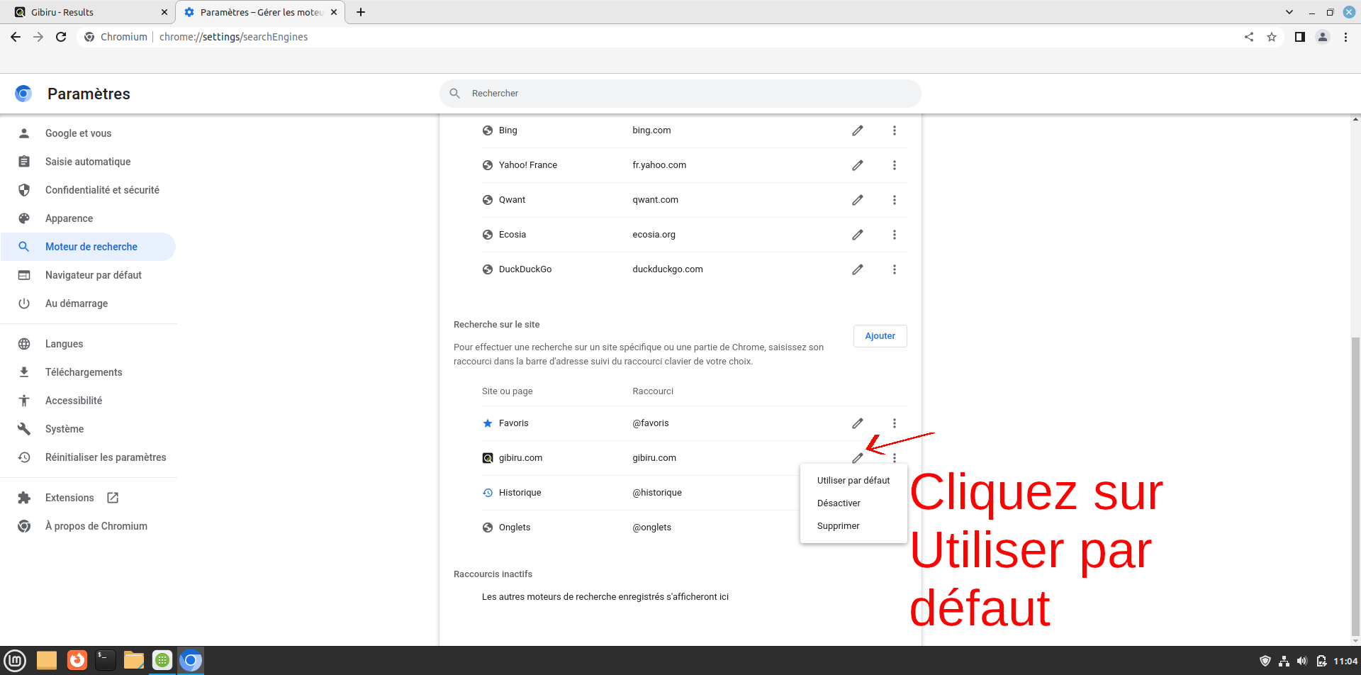 Rentrons dans les Paramètres afin de configurer un moteur de recherche par défaut.