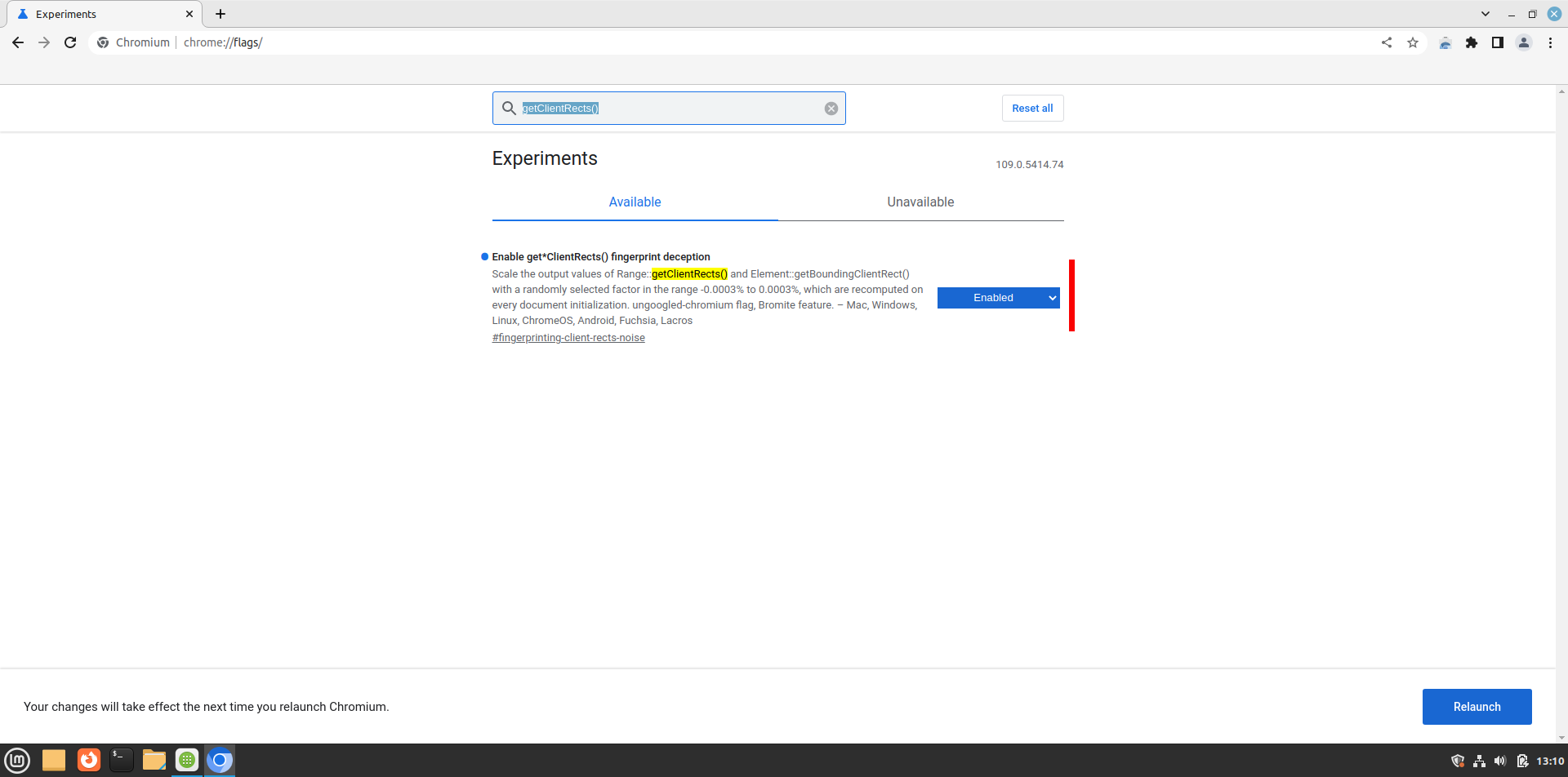 - Enable get*ClientRects() fingerprint deception à ENABLED