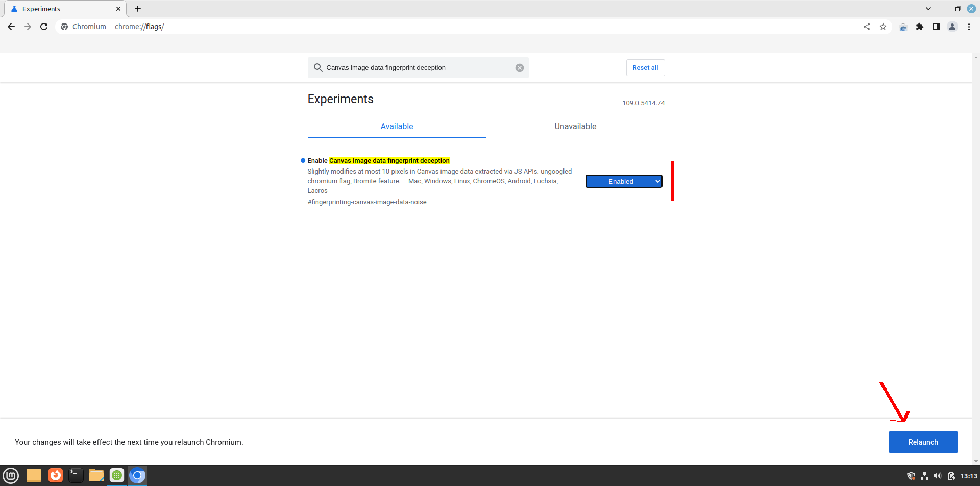 - Cliquer sur le bouton 'Relaunch' en bas à droite. Ceci aura pour conséquence de redémarrer le navigateur.