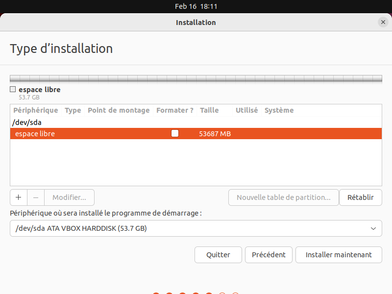 - Sélectionnez le disque (/dev/sda ou /dev/nvme0 ou ...), puis cliquez sur "Ajouter une partition..." :