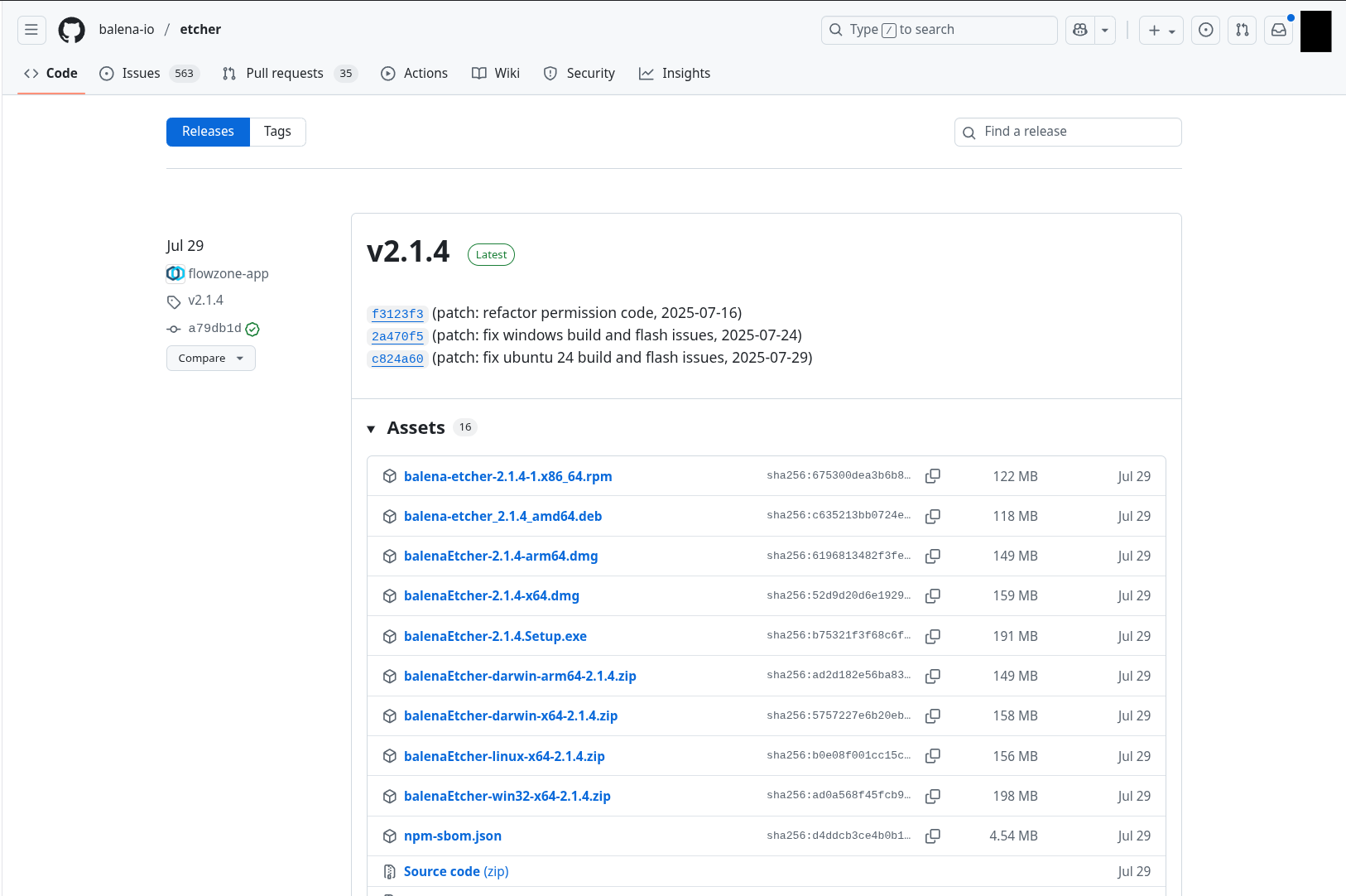 Visiter les page des versions Etcher livrées ici. Ceci vous renvoit à cet écran-ci :