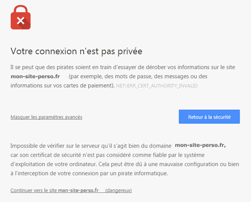 Si un site n’offre pas HTTPS, le navigateur vous bloque ou vous avertit clairement, c'est alors à vous de décider :