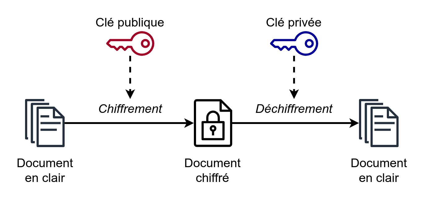 Schéma simplifié chiffrement asymétrique (Source Wikipedia.fr)
