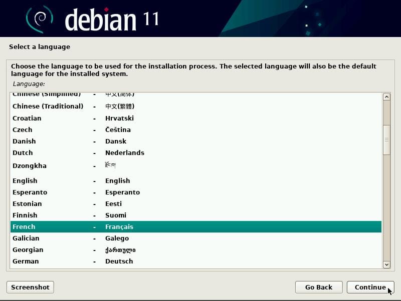 - Choisissez votre langue (Français) puis cliquez sur "Suivant" :