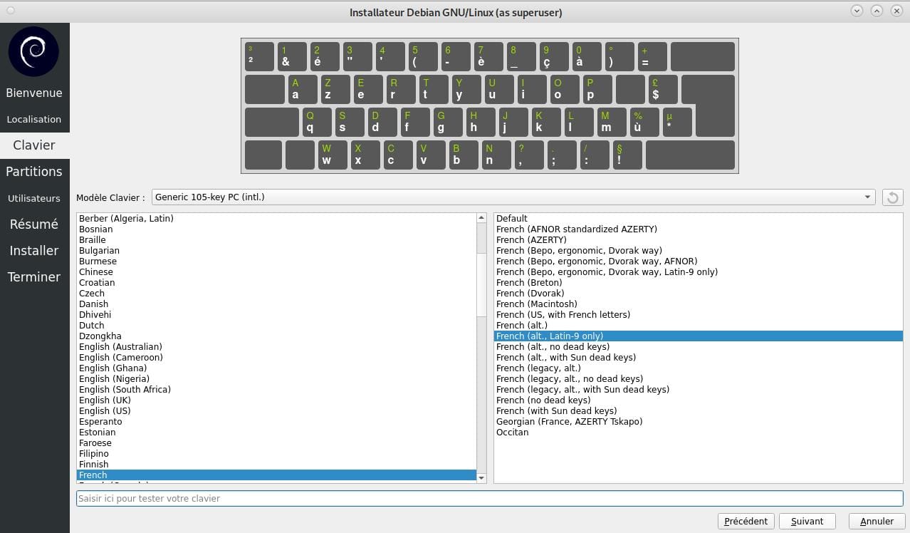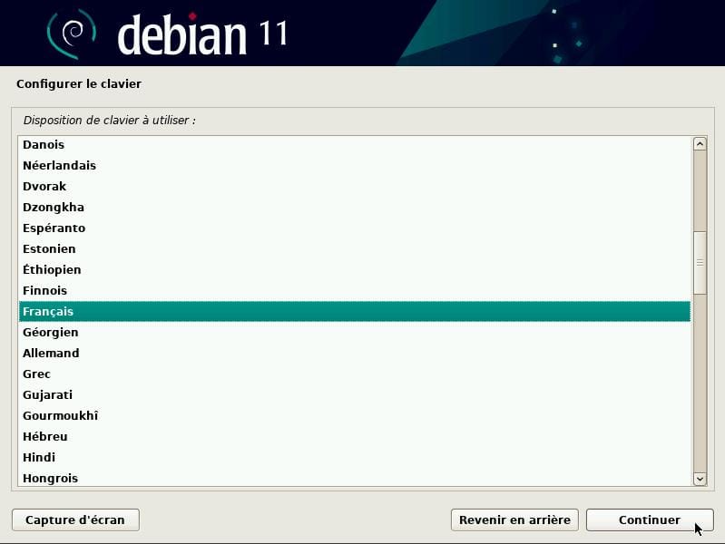 - Sélectionnez votre disposition clavier puis cliquez sur "Suivant" :
