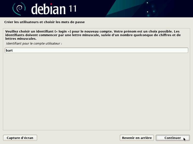 - "Quel nom souhaitez-vous utiliser pour la connexion" : entrez un identifiant en minuscules, sans espace.