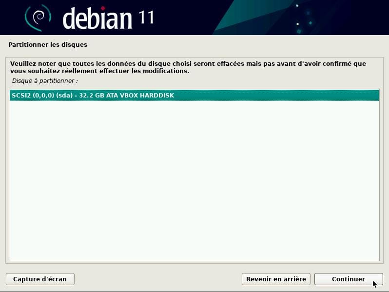 - Sélectionnez votre disque principal (sda ou nvme0n1 selon votre machine) :