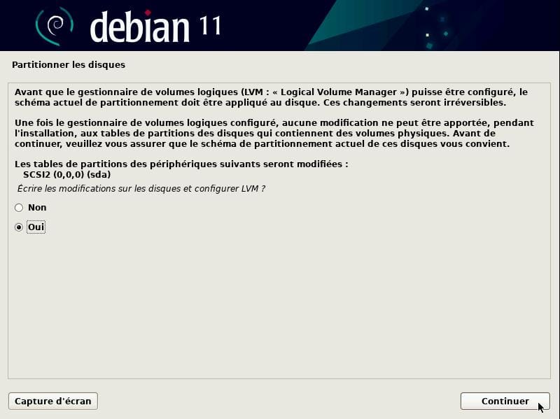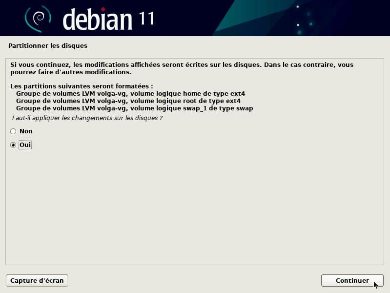 - Sélectionnez "Oui" pour appliquer le partitionnement :