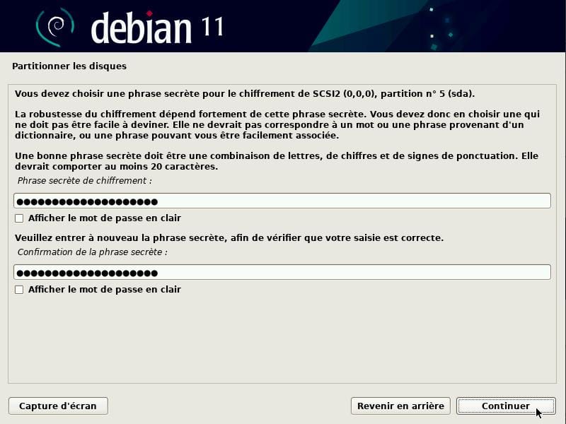 - Choisissez un mot de passe pour le déchiffrement du disque :
