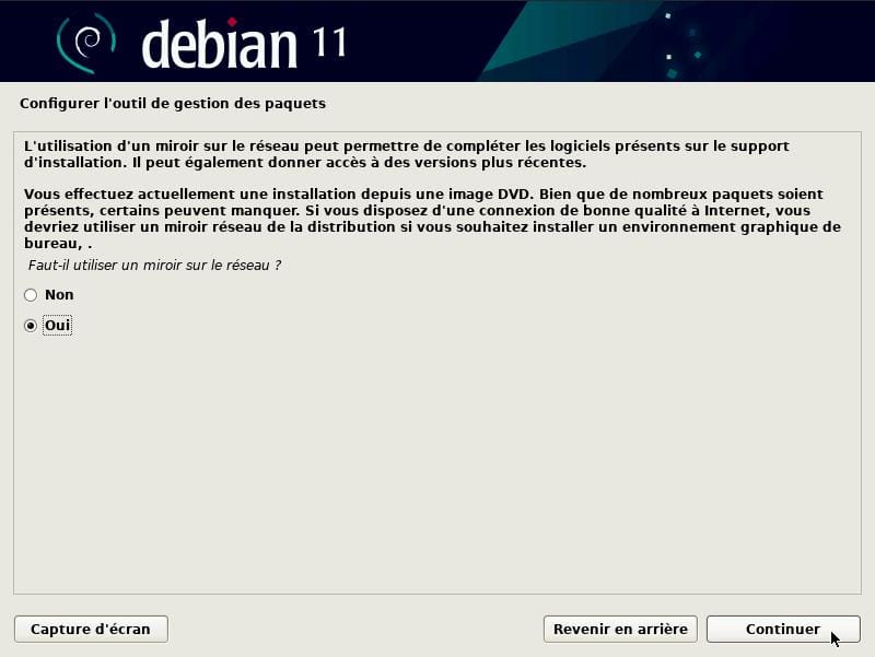 - Sélectionnez "Oui" pour utiliser un miroir réseau :