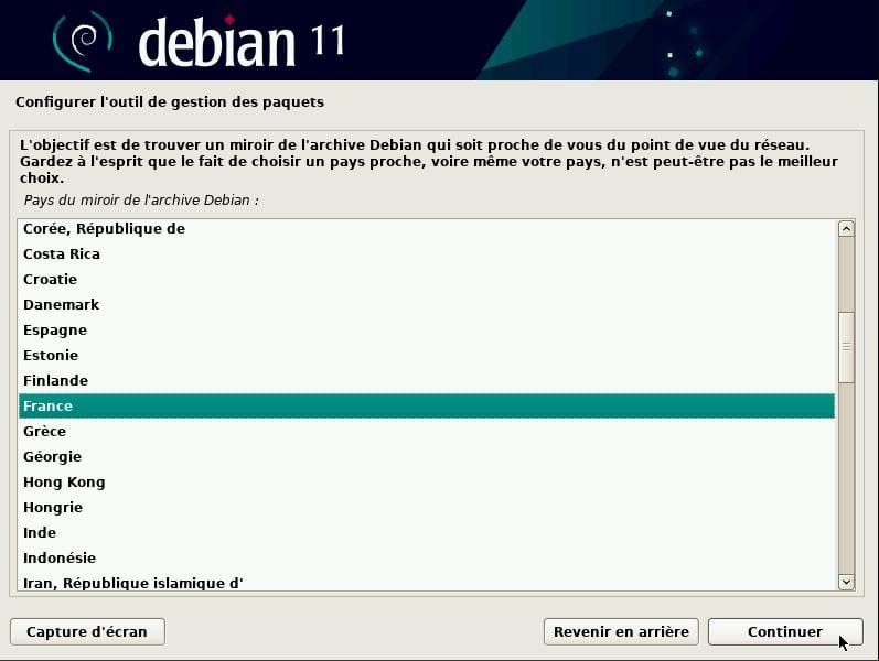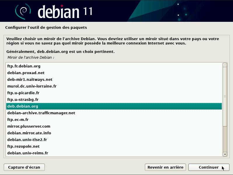 - Sélectionnez un miroir proche ou gardez celui par défaut :
