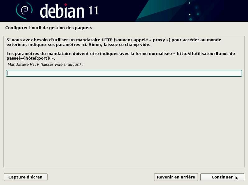 - Laissez le champ proxy vide (sauf si votre réseau en requiert un) :