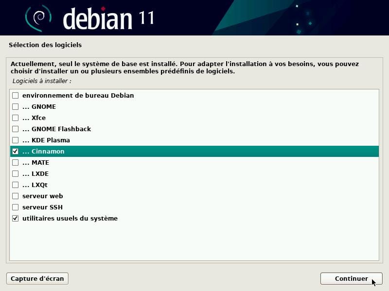 - Laissez coché "Utilitaires usuels du système" puis sélectionnez votre environnement de bureau :