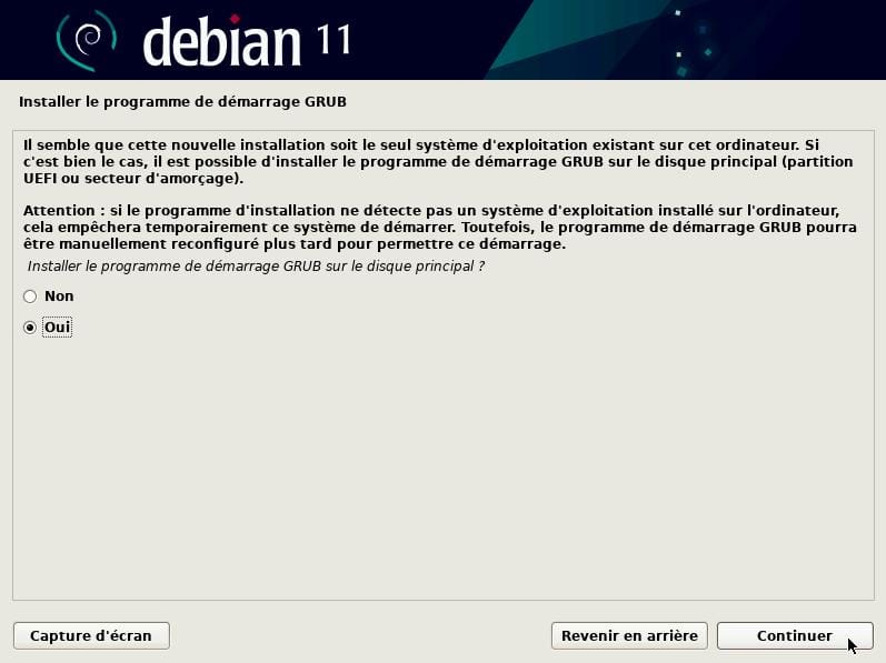 - Confirmez avec "Oui" puis cliquez sur "Continuer" :