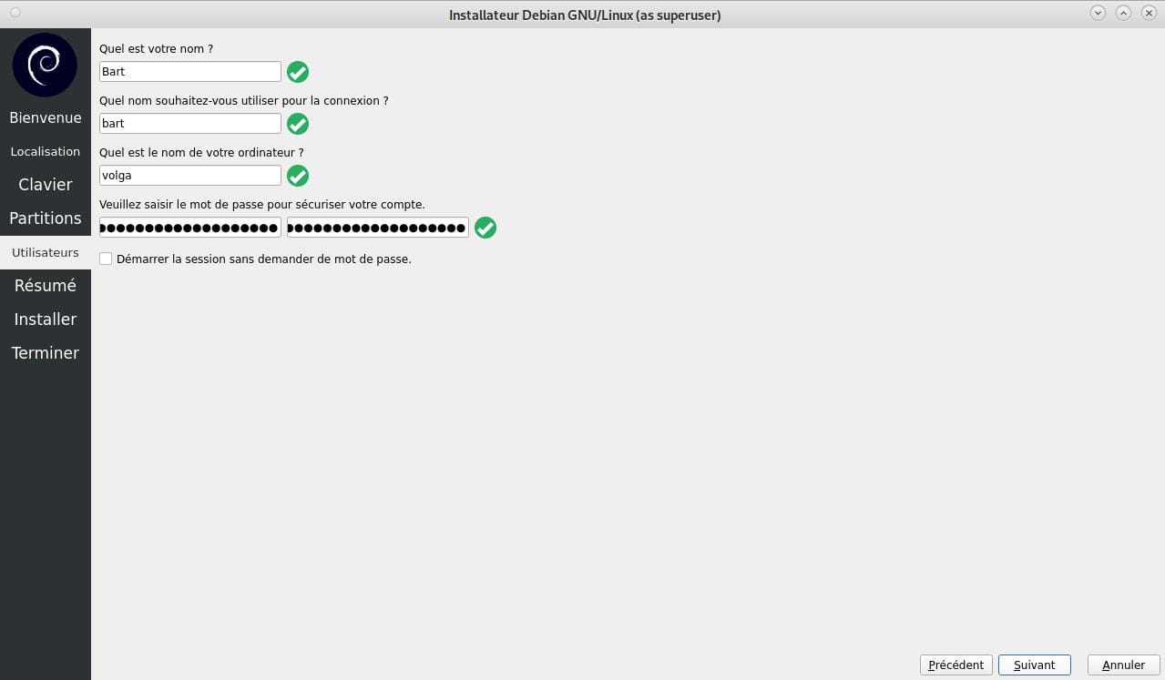 /home/votre-identifiant/ lui sera associé et vous ne pourrez pas le changer.- "Quel est le nom de votre ordinateur" : choisissez un nom pour votre machine.