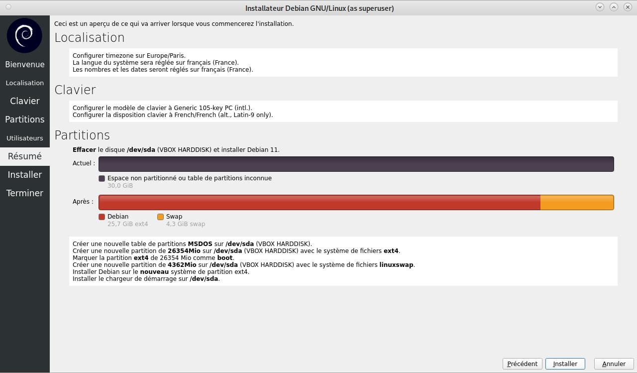 L'installation dure entre 30 et 60 minutes selon votre connexion Internet, votre disque et l'environnement de bureau choisi.