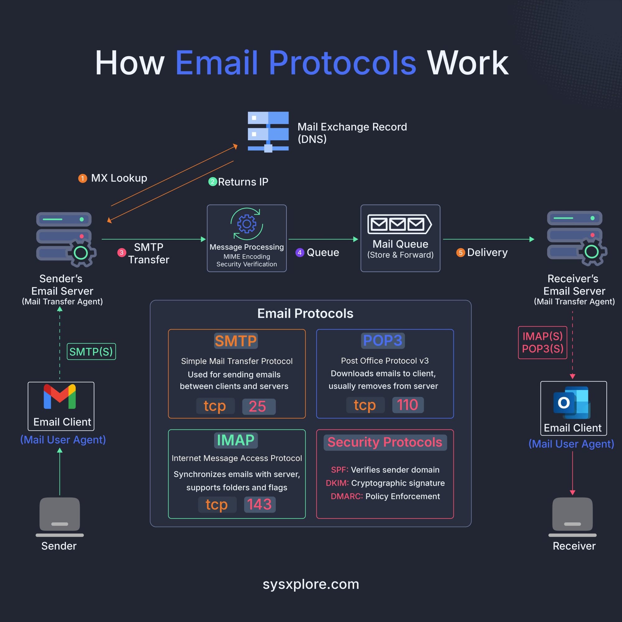 Les protocoles pour e-mails (Crédits: sysxplore.com)
