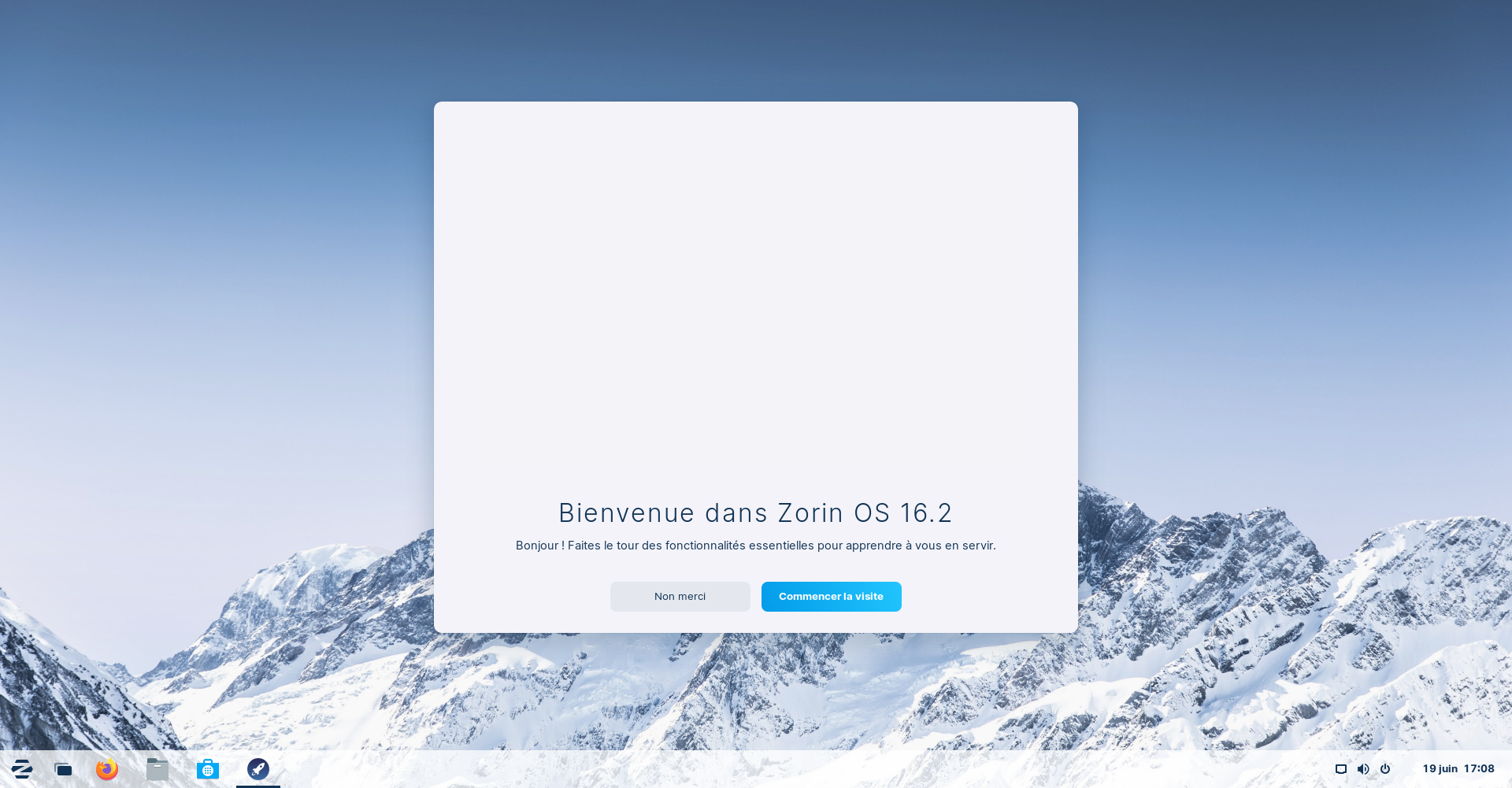 Vous pouvez continuer en cliquant sur "Premiers pas", pour configurer finement votre distro et installer potentiellement des pilotes ou applications importantes manquants.