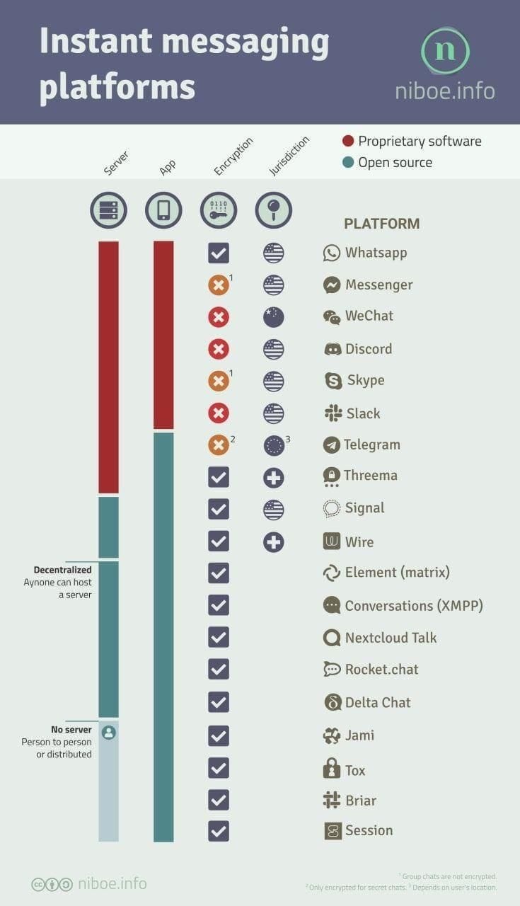 ➡️ Tableau comparatif des messageries par Mark Williams sous license CC BY-NC-SA 4.0