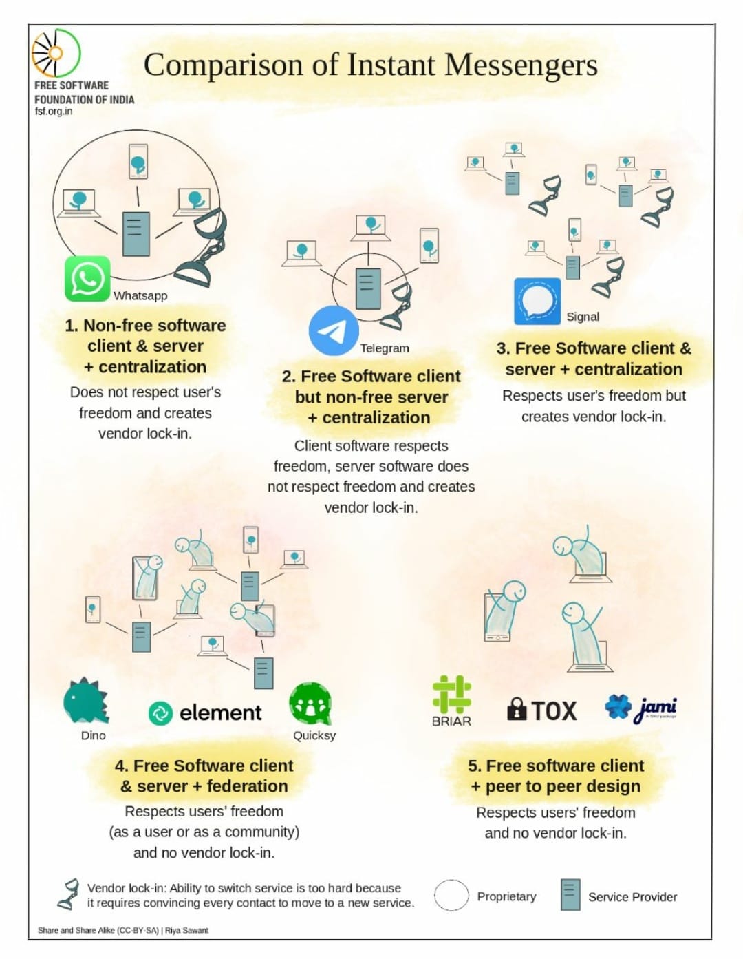 3. Client + serveur libres, centralisation (ex. Signal, Wire)