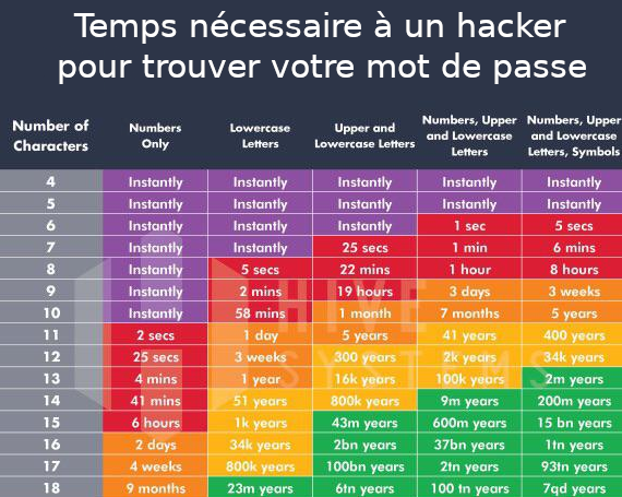 - Longueur : au moins 12 caractères. Plus c’est long, plus c’est dur à casser.