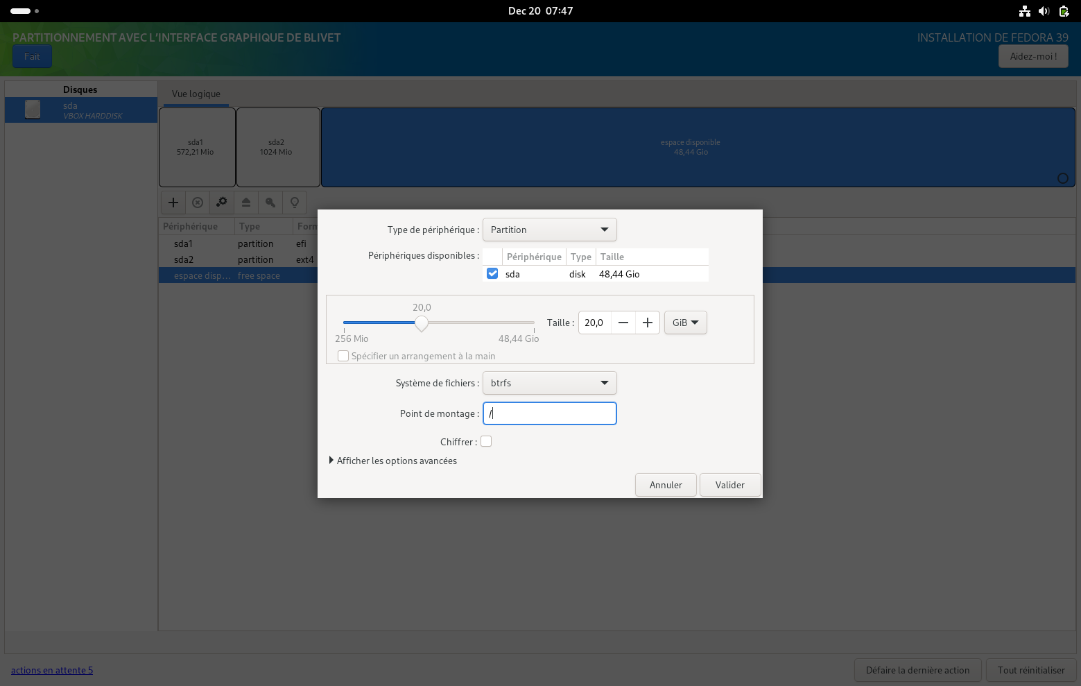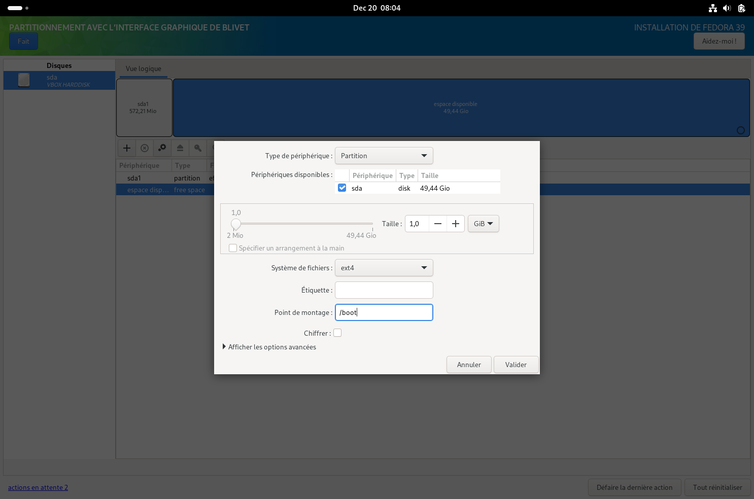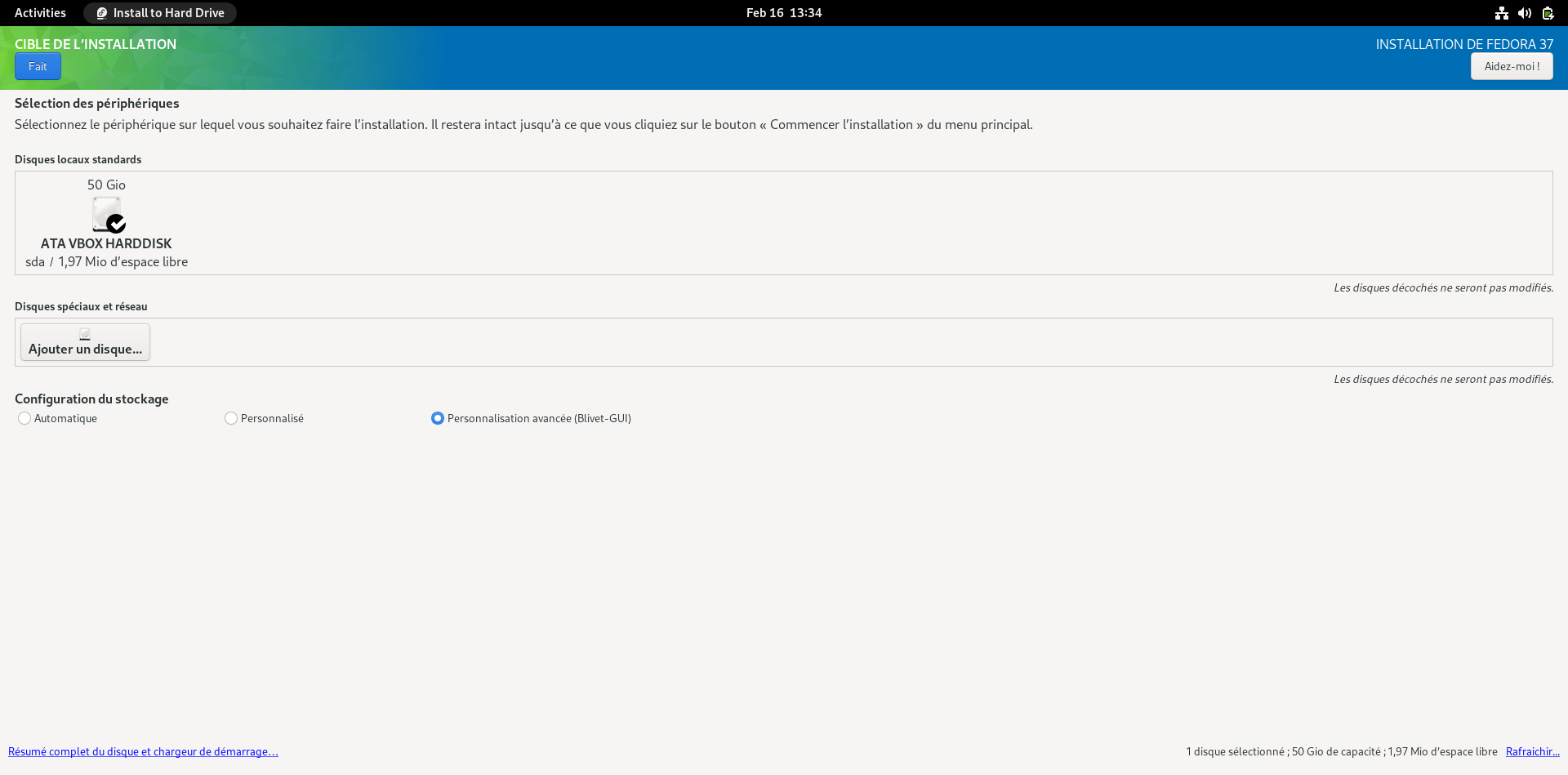 - Cliquez sur "Personnalisation avancée (Blivet GUI)" :