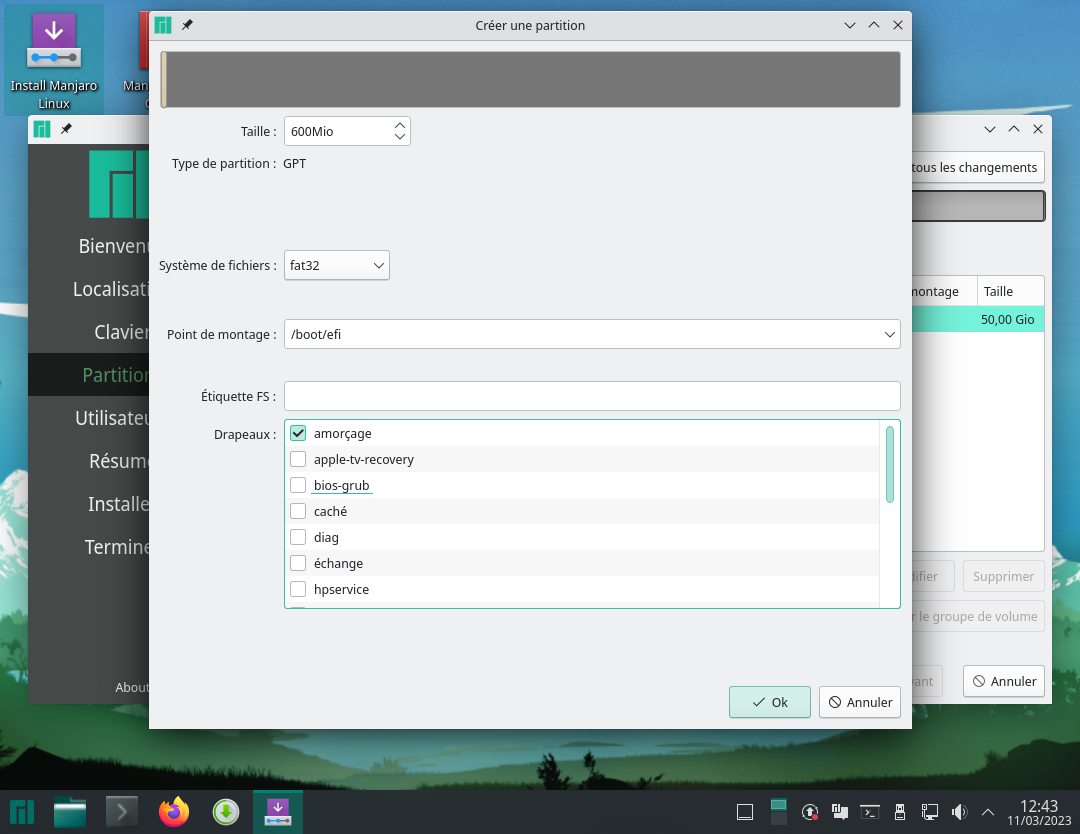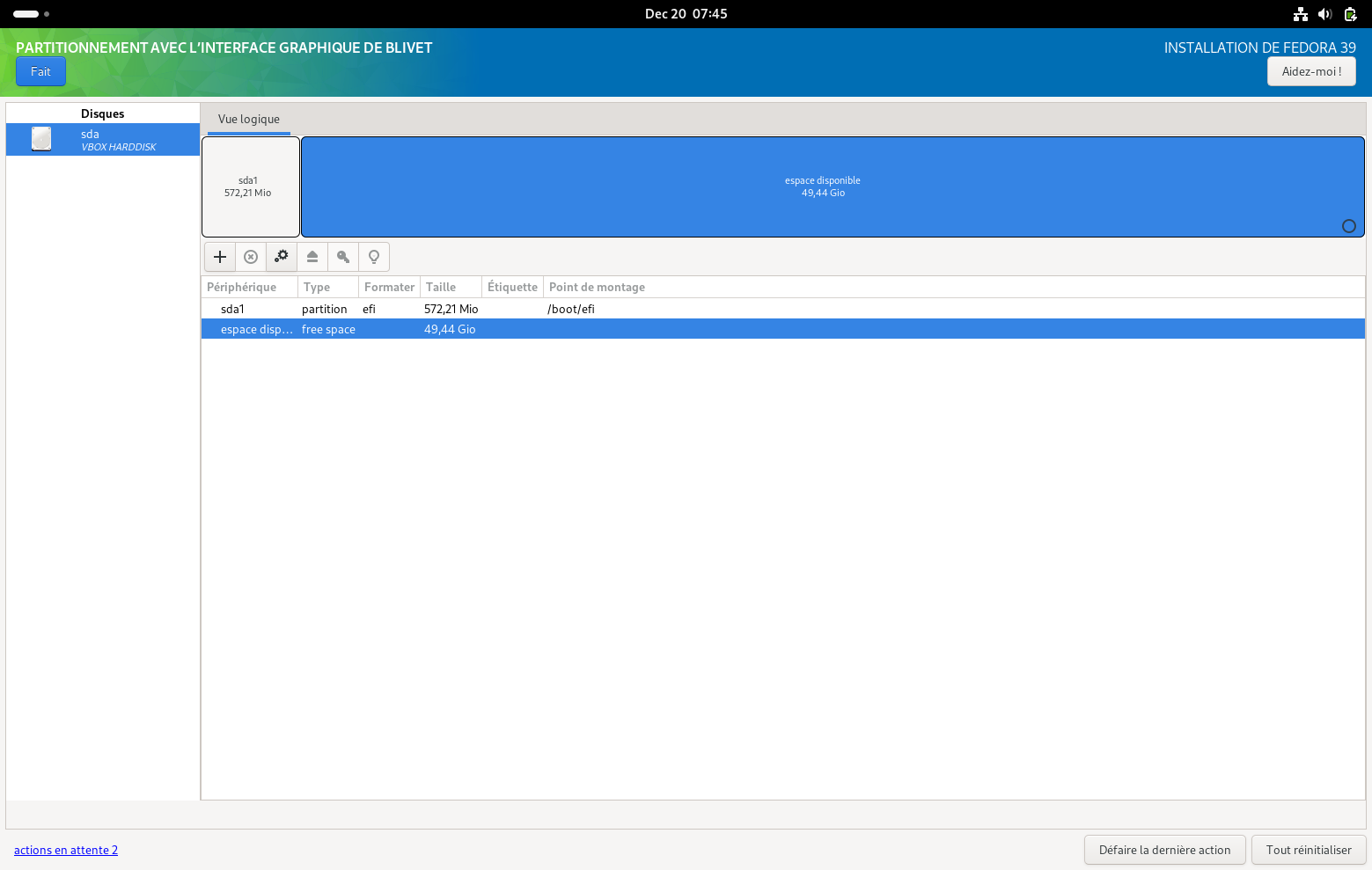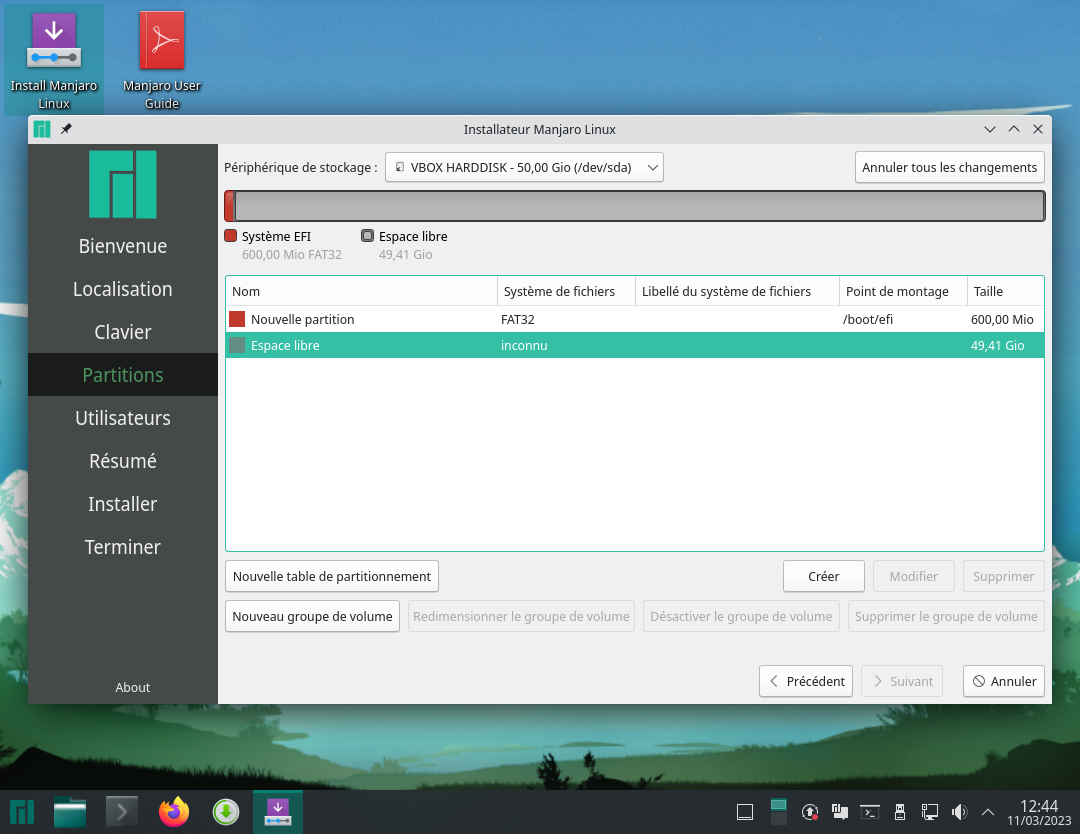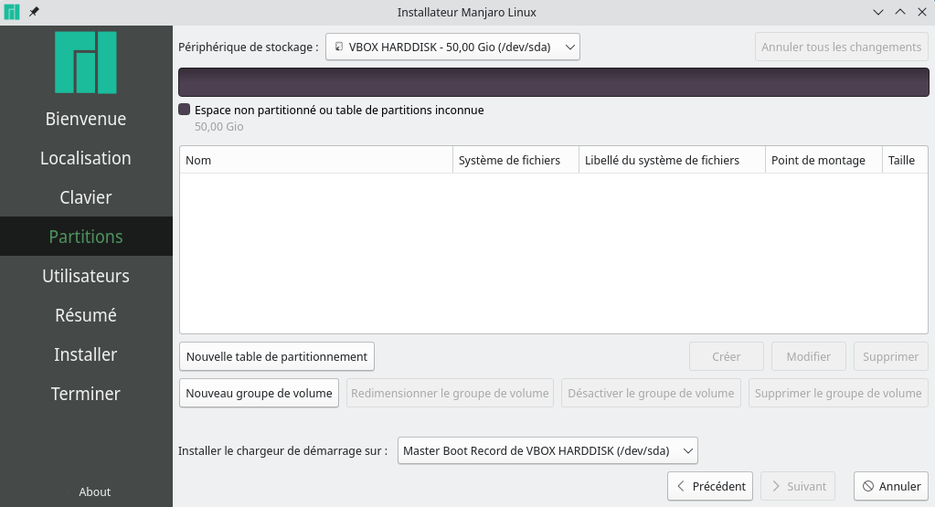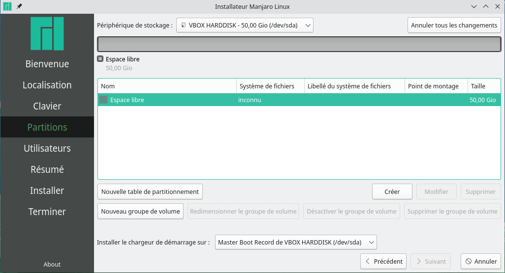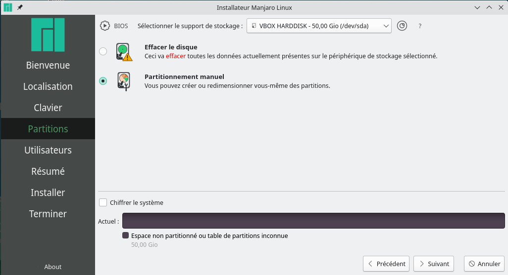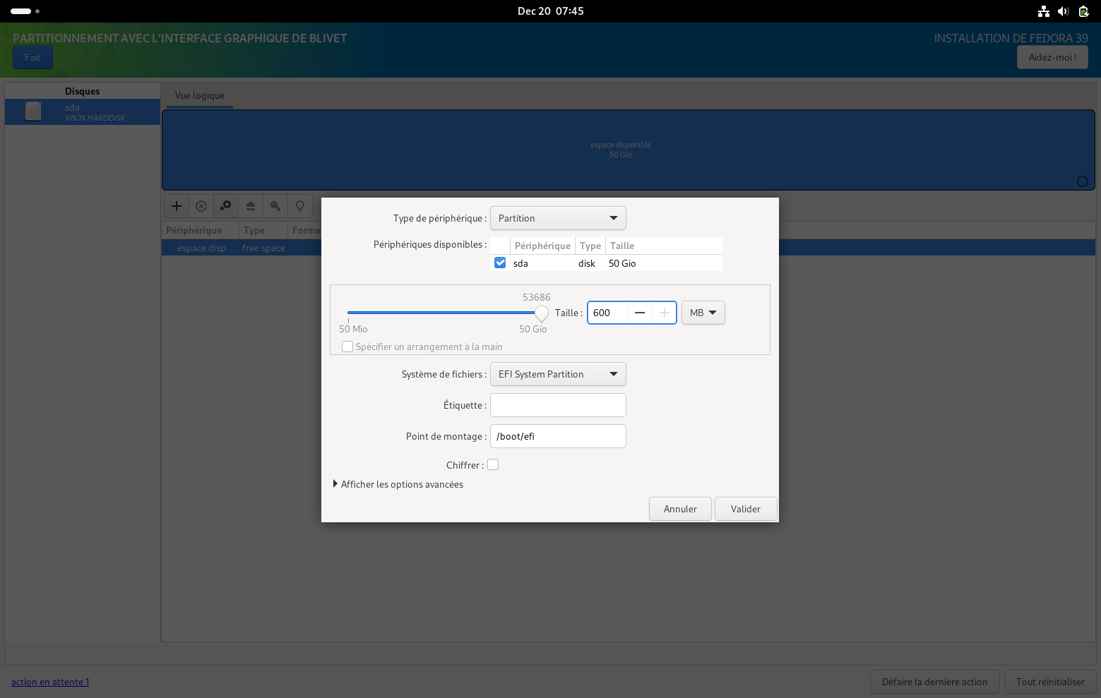 /swapfile à la racine de votre partition principale.Dans la suite, nous avons pris un disque de 50Go.