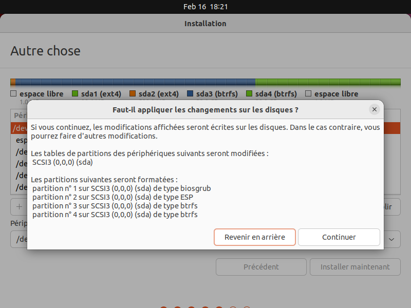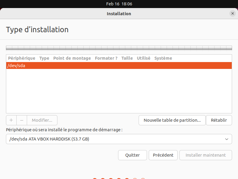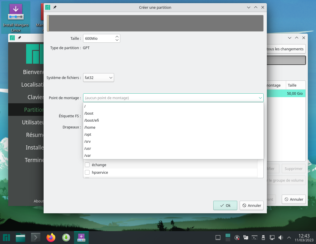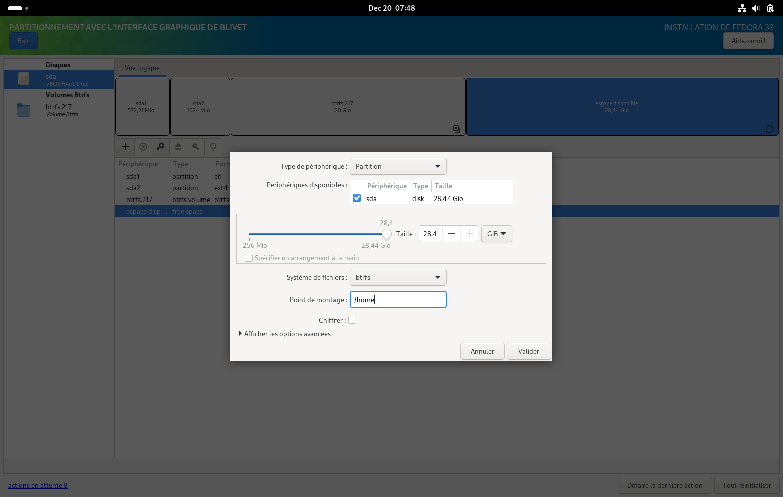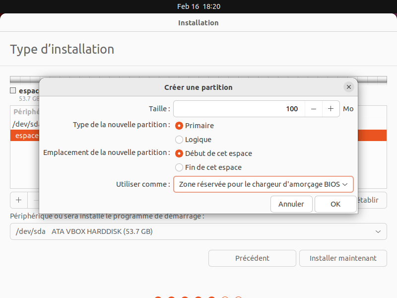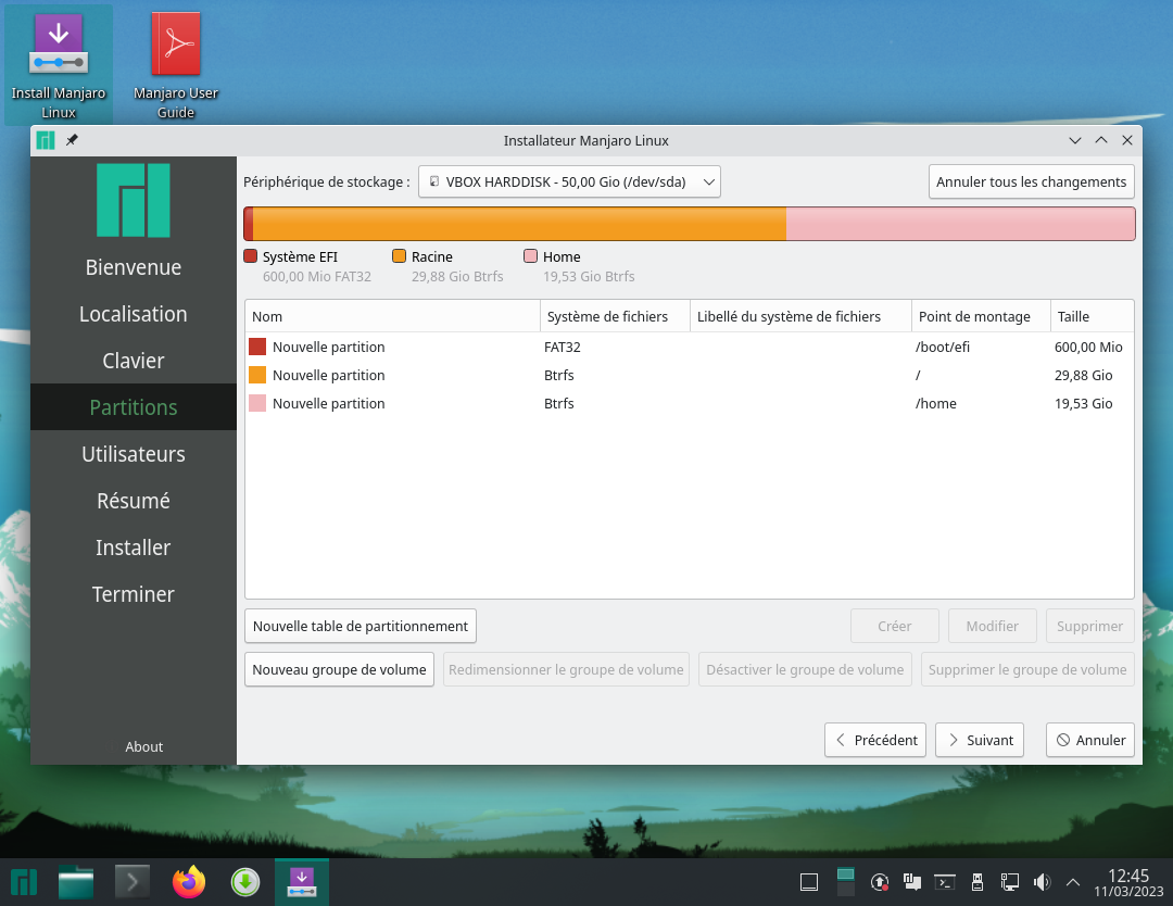 /homeserait plein. En effet, si une seule partition est présente, le système généralement renvoie toutes sortes d'erreurs qui amènent parfois à un blocage intégral du système. En séparant ces 2 partitions, nous pourrons mieux gérer cet aspect et éviter ce blocage. - Lorsque nous avons plusieurs distributions installées et que nous souhaitons partager cette partition entre les 2 systèmes ; c'est un cas assez rare, mais cette séparation rend moins complexe ce cas d'usage.