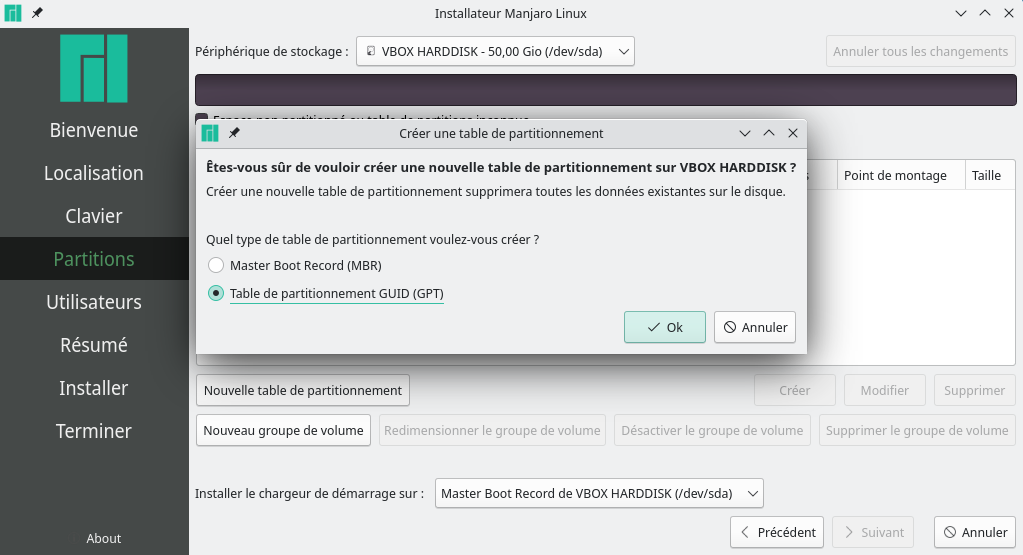 - Sélectionnez "Table de partitionnement GUID (GPT)" :