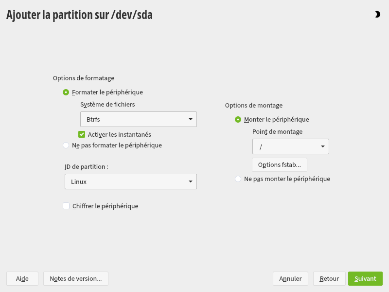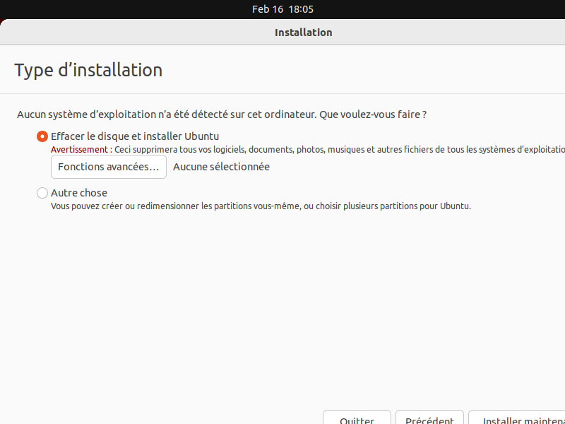 /homeet ne réinstaller que la partition racine/du système ; très pratique si l'on souhaite ne pas recréer certains fichiers de configuration.