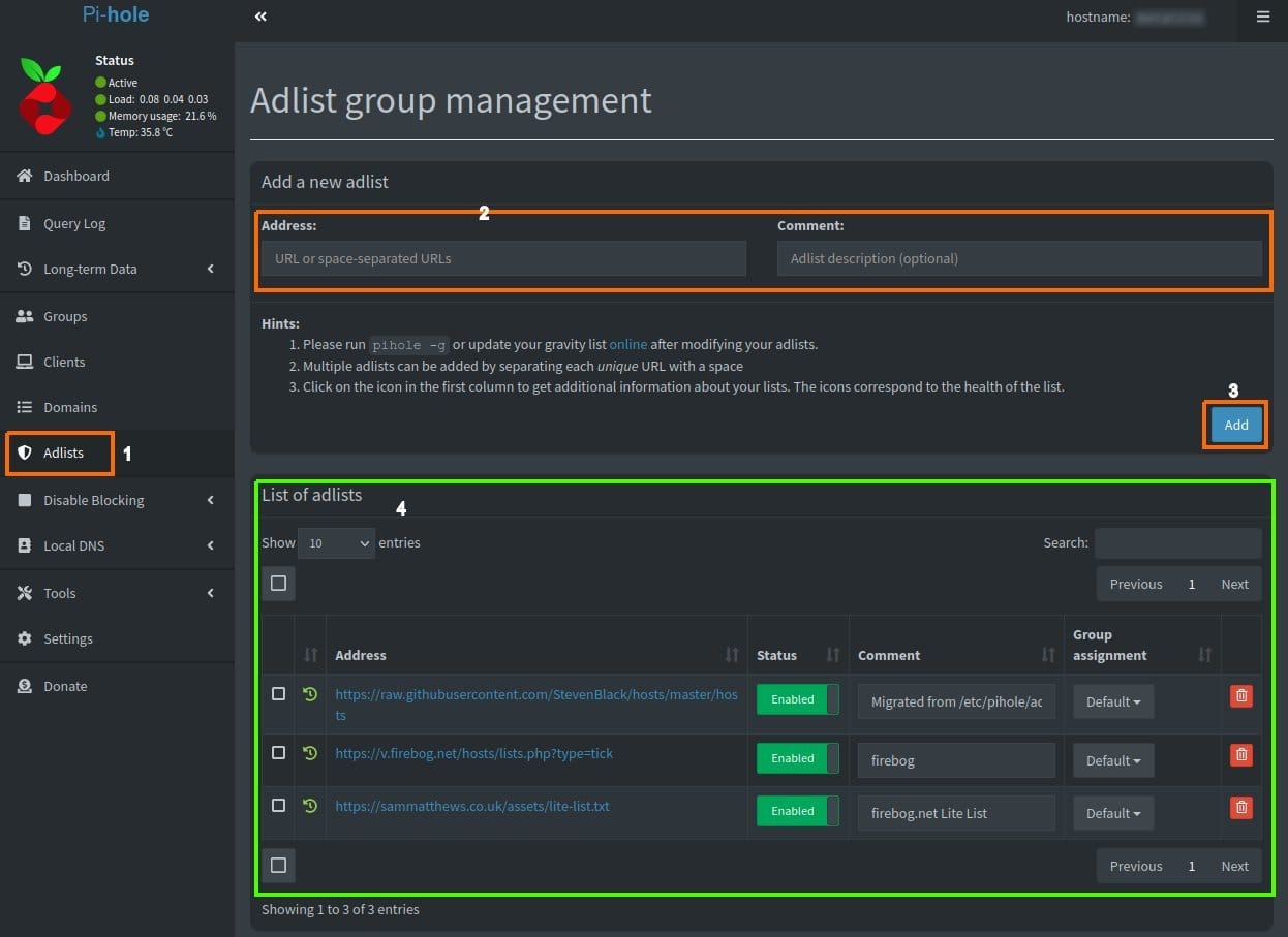 Pi-hole inclut par défaut la liste StevenBlack/hosts, une référence solide et régulièrement mise à jour. Vous pouvez y ajouter d'autres listes selon votre niveau de filtrage souhaité.