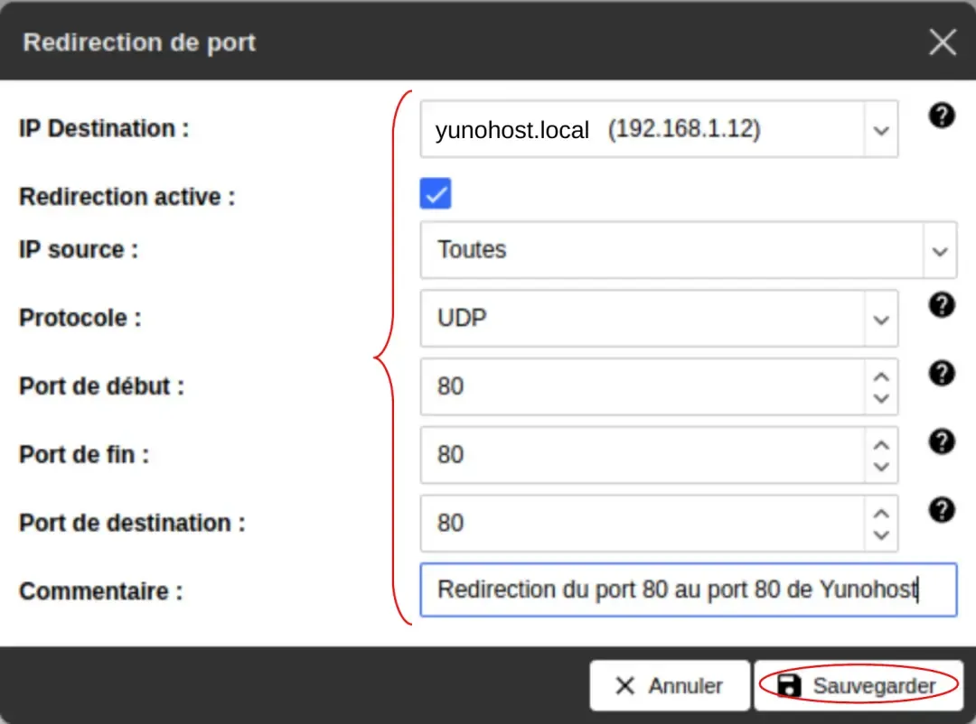 - Le port 80 de la box → port 80 de l'IP de votre Raspberry Pi