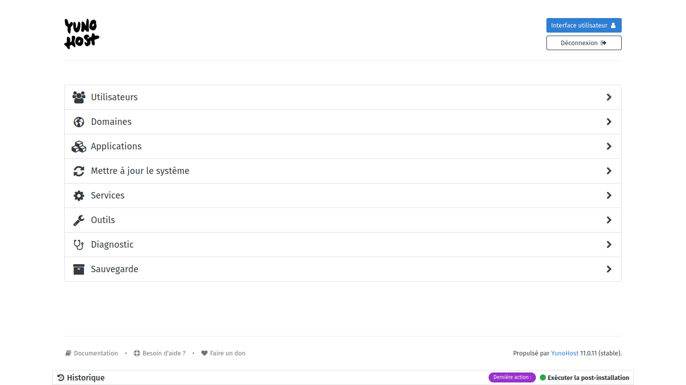 - Lancer le diagnostic YunoHost pour vérifier que tout est en ordre.